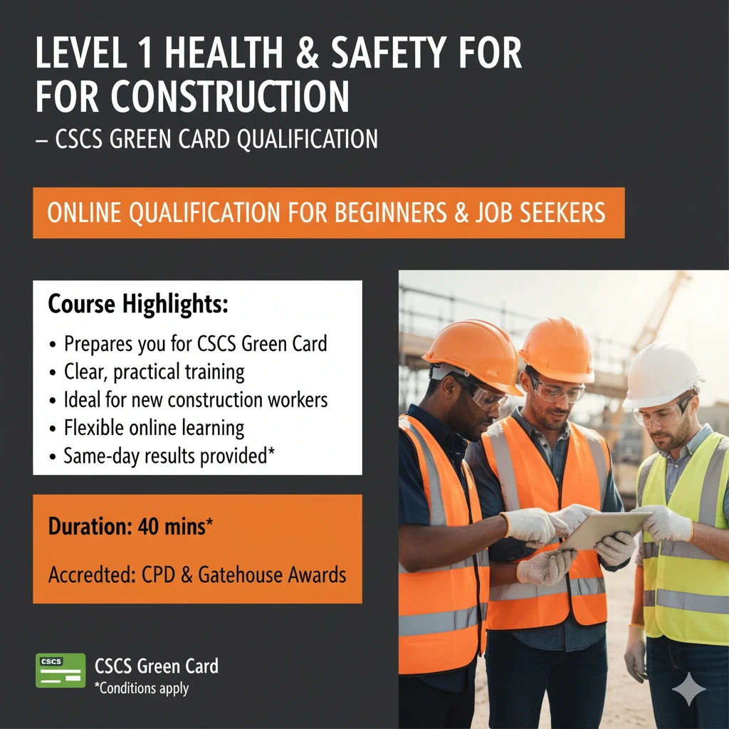 Designed for beginners and job seekers, this qualification prepares you for the CSCS Green Card with clear, practical training.